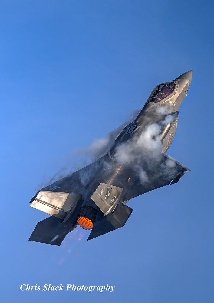 USAF F35A 5th generation stealth fighter in a unrestricted climb at RAF Lakenheath
