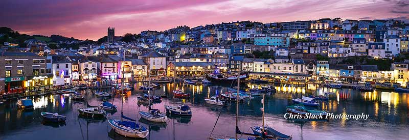Brixham at dusk, just after the sun goes down and the lights come on.